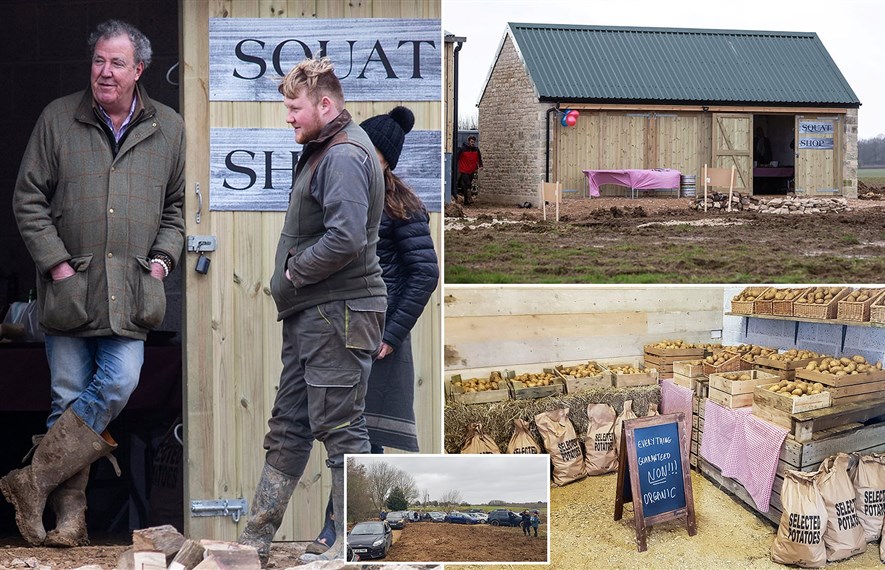 ჯერემი კლარკსონი ფერმის მაღაზიაში კარტოფილის გასაყიდად მოემზადა
