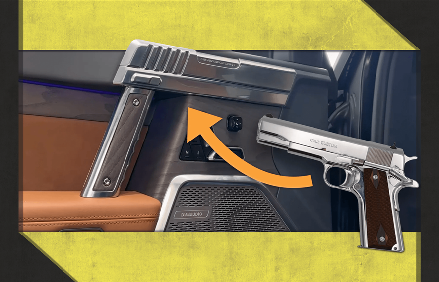 მას შემდეგ, რაც ამ ავტომობილის ექსტერიერს ნახავთ მისი Colt M1911-ით შთაგონებული კარი არ გაგიკვირდებათ. სხვათა შორის, ეს იარაღი მოხმარებაში უკვე საუკუნეზეა მეტია. მეტიც, ის დღესაც ერთ-ერთი ყველაზე პოპულარული არჩევანია იარაღის მფლობელებში.